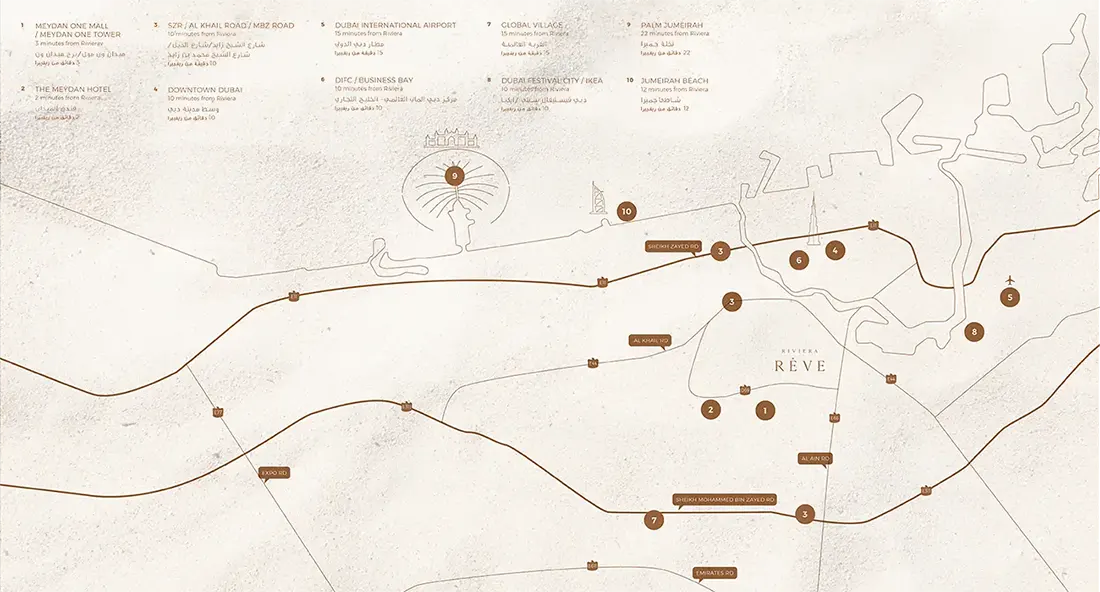 Riviera Rêve is here by Azizi Developments at Meydan, Mohammed Bin Rashid City offering the most luxurious and classy studios, 1, 2, & 3 bedroom apartments. One of the best living experiences that upgrade your life to new heights of excellence in architecture and infrastructure, which comprises a luxurious exposure to beachfront living with iconic amenities and brilliant services.