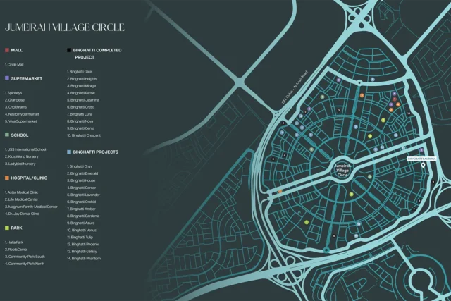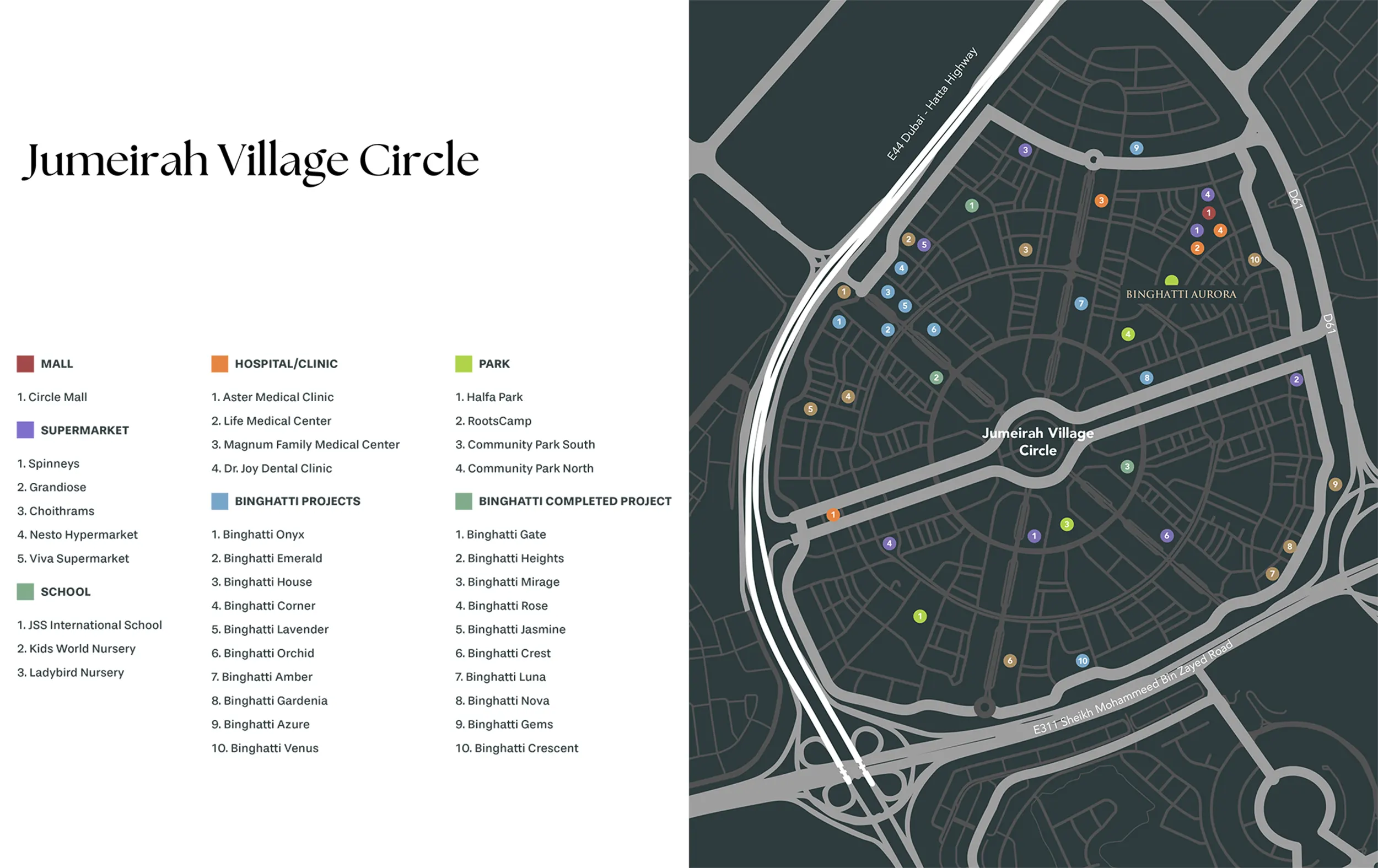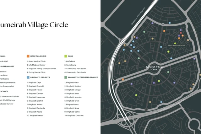 - Prime location at Jumeirah Village Circle (JVC), Dubai ensuring excellent connectivity to the major highways and key destinations across the city.
