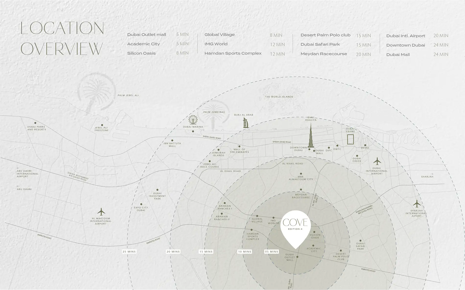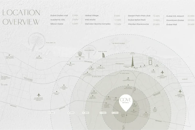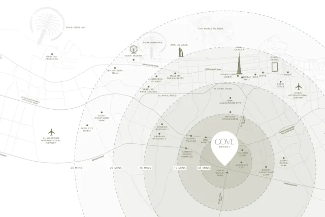Cove Edition 4 by Imtiaz Developments is a sanctuary of modern sophistication and timeless luxury nestled in the vibrant community of Dubailand with studios, 1 & 2 bedroom apartments. This architectural masterpiece is designed to redefine contemporary urban living, offering a unique blend of comfort, elegance, and convenience. With its meticulously crafted residences, stunning design, and world-class amenities, the façade stands as an oasis for those seeking a tranquil yet connected lifestyle in Dubai’s bustling landscape.