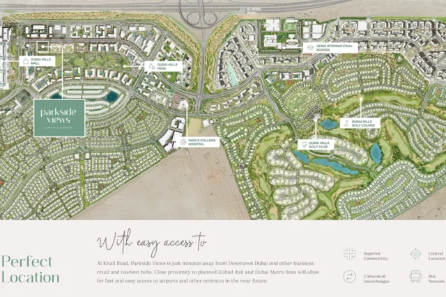 Discover Parkside Views at Dubai Hills Estate, a new residential development that features opulent collection of 1, 2, 3 bedroom apartments, duplexes and townhouses by Emaar Properties. This multi-storey residential building under development is set to redefine luxurious living in the heart of Dubai, offering its residents and visitors the very best health, education and recreational facilities.