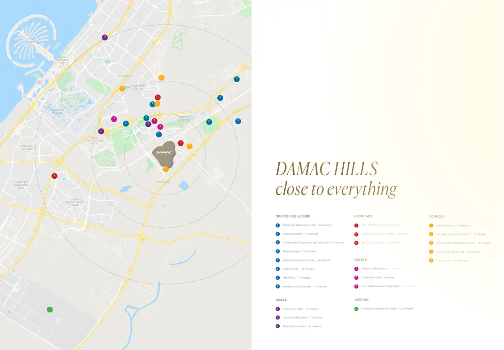 Being in one of the strategic locations, residents can take advantage of many nearby local amenities and services of the community. This includes Golf Courses, Damac Mall, Supermarket, a hotel, Fishing Lake, dining, retail outlets, and many more. Some integrated facilities are pools, cafes, lush gardens, security services, parking areas, etc.