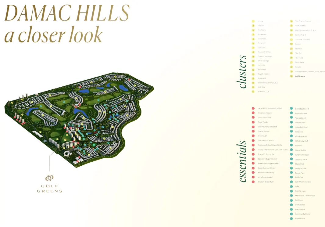Golf Greens at Damac Hills, Dubai is an exceptional residential Twin Tower by Damac Properties with luxurious and elegant 1 & 2 bedroom apartments and 2 & 3 bedroom townhouses. This high-rise 20-storey development of towers A and B comes with astonishing infrastructure ornamented with some greenery in it. This lavish creation is the hub of many required and leisure-based amenities and services along with the stunning vistas of the lush green and Trump International Golf Course.