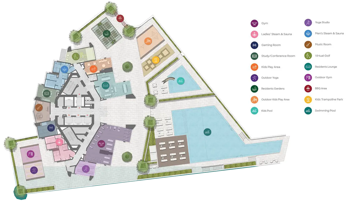 The design highlights of the residences come with contemporary finishes, including an open kitchen layout design with detailed amenities. At the same time, the striking design architecture stands unique in the locality to become the area’s most distinctive address, lined with exclusive dining, leisure and shopping.