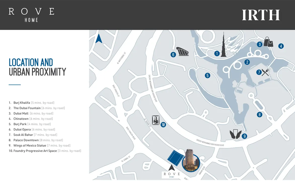 - Key attractions like Burj Khalifa, Dubai Fountain, and Dubai Mall are just minutes away