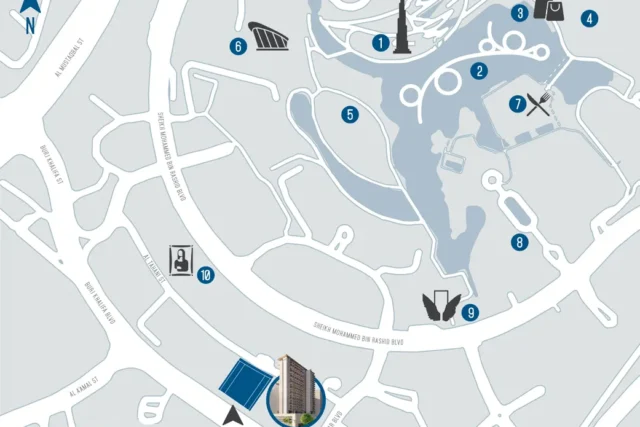 The prime location in Downtown lets it access the Burj Khalifa District, where you are minutes away from the Dubai’s most iconic attractions. Within a short drive, you can reach the Burj Khalifa, the Dubai Fountain, Dubai Mall, Burj Park, Dubai Opera, Souk Al Bahar, and the Foundry Progressive Art Space. Living here means immersing yourself in the energy and culture of this bustling metropolis.