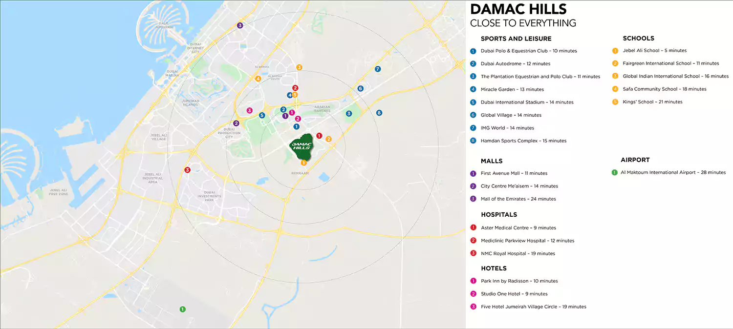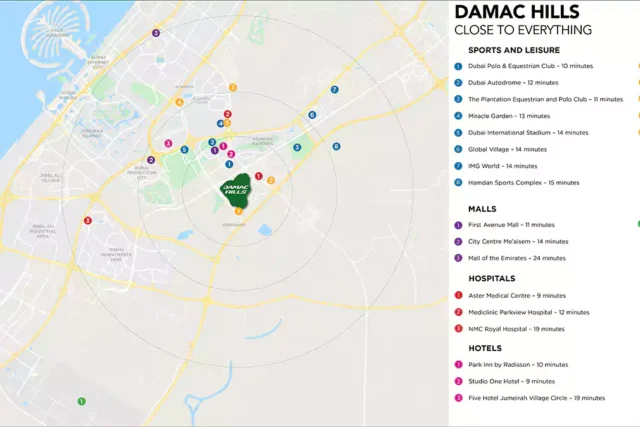 Set in a tranquil and serene environment and offers easy connectivity to major road networks. Residents can have easy reach to Dubai Autodrome, Dubai Studio City, Plantation Equestrian and Polo Club, Dubai Miracle Garden, Dubai Sports City, Jebel Ali Racecourse, Mall of Emirates, Palm Jumeirah and many more.