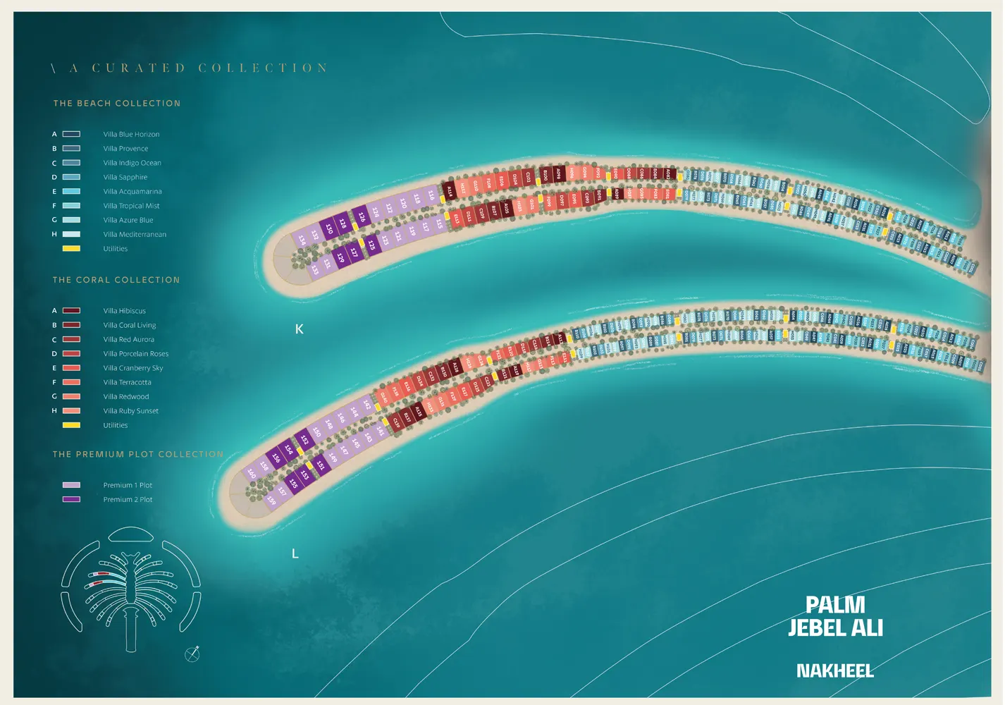 The Coral Collection by Nakheel presents an unparalleled opportunity for luxurious living with exclusive selection of 7-bedroom villas and plots on the prestigious Palm Jebel Ali Island, Dubai. Nestled within this iconic destination, the newly launched façade offers exquisite villas designed for utmost comfort and elegance. Each villa boasts access to a private beach, allowing residents to indulge in the serene beauty of the Arabian Gulf and breathtaking Dubai sunsets. With eight distinct villa types, ranging from Villa Hibiscus to Villa Ruby Sunset, residents can choose a home that reflects their unique style and preferences.