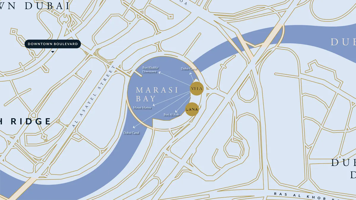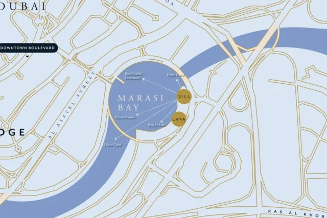 - Breathtaking views of Marasi Bay, Iconic Burj Khalifa and Downtown Dubai
